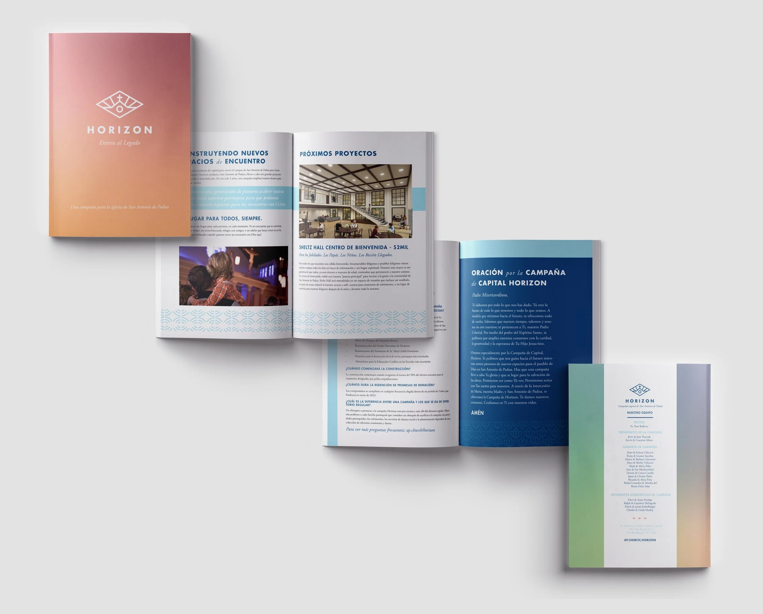 We named the campaign “Horizon,” because the horizon is the distant place towards which the pioneer strikes out, and it is also the meeting place of heaven and earth. We hoped it would resonate with the parish due to their historic language around “the pioneer generation” who built the parish from the ground up. We branded the campaign with symbols and imagery that would reflect the themes of cultivation, growth, and community.